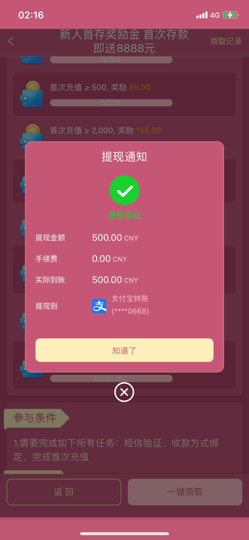 前几天打了一个号上1200 要充值以为会黑当欢乐豆打了 这次倒下了又打出来一个借了一张充进去提现秒到