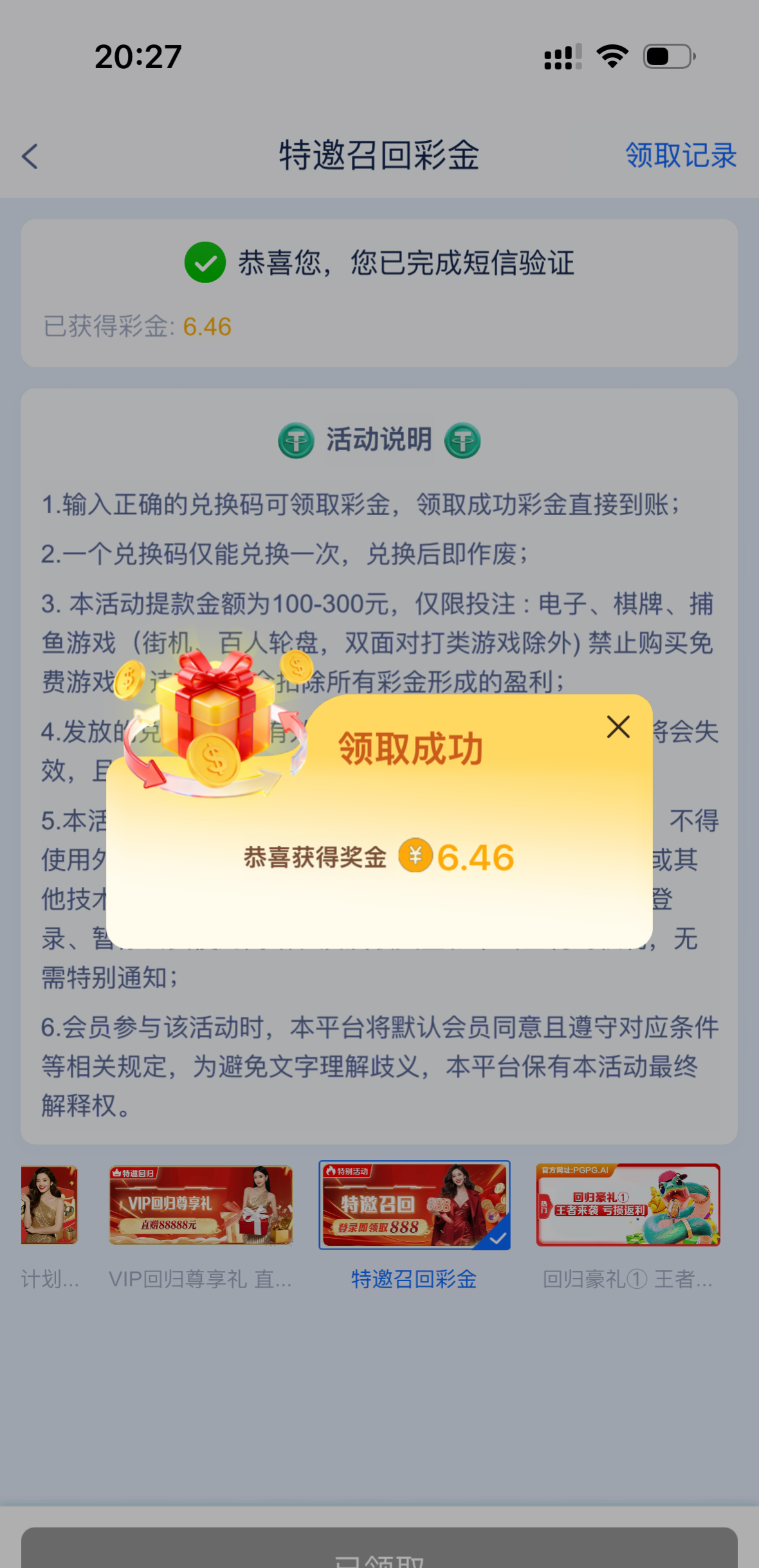 【PG娱乐城】 特邀召回送6