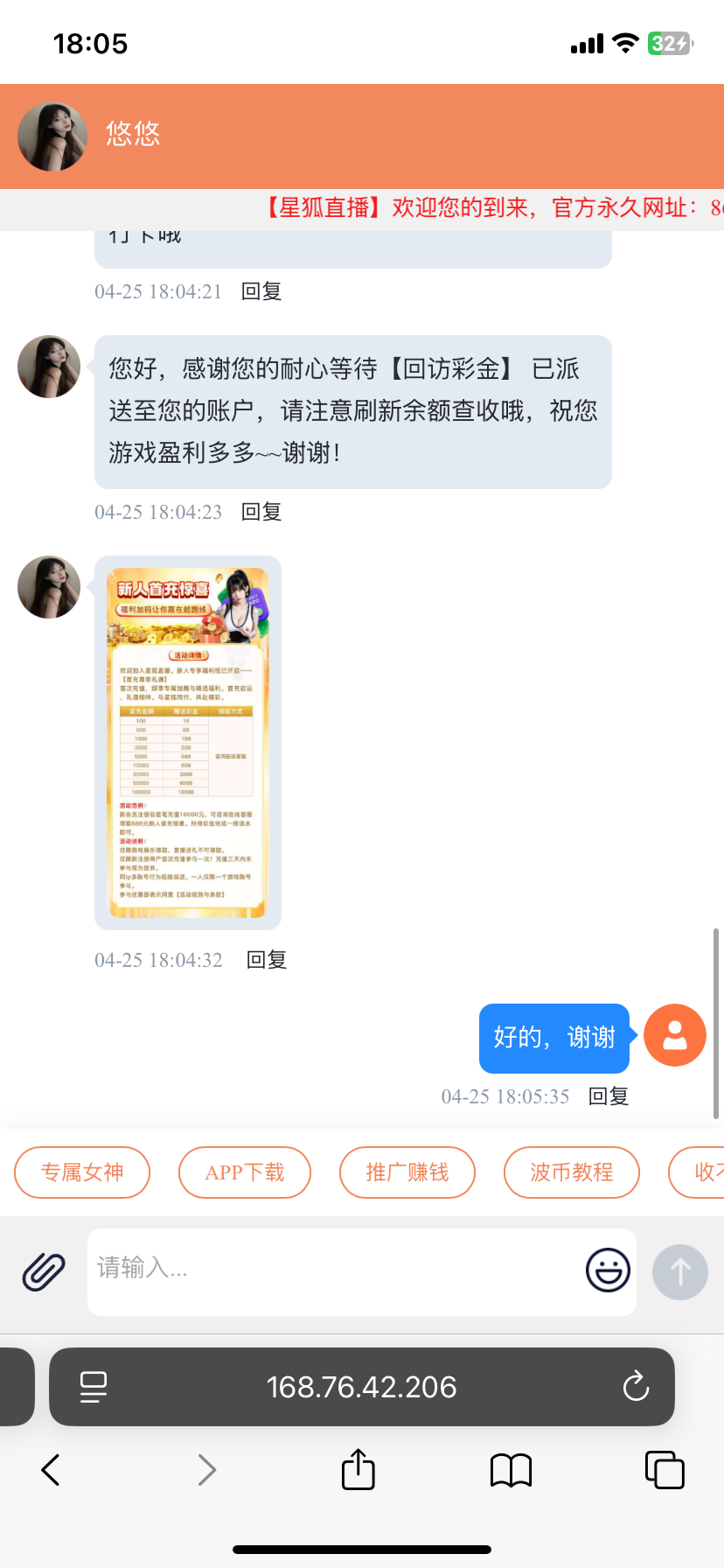 我都没下载好,直接找客服要回访电话彩金,直接给了, 你们试试吧,电话报的网址,868883.cc