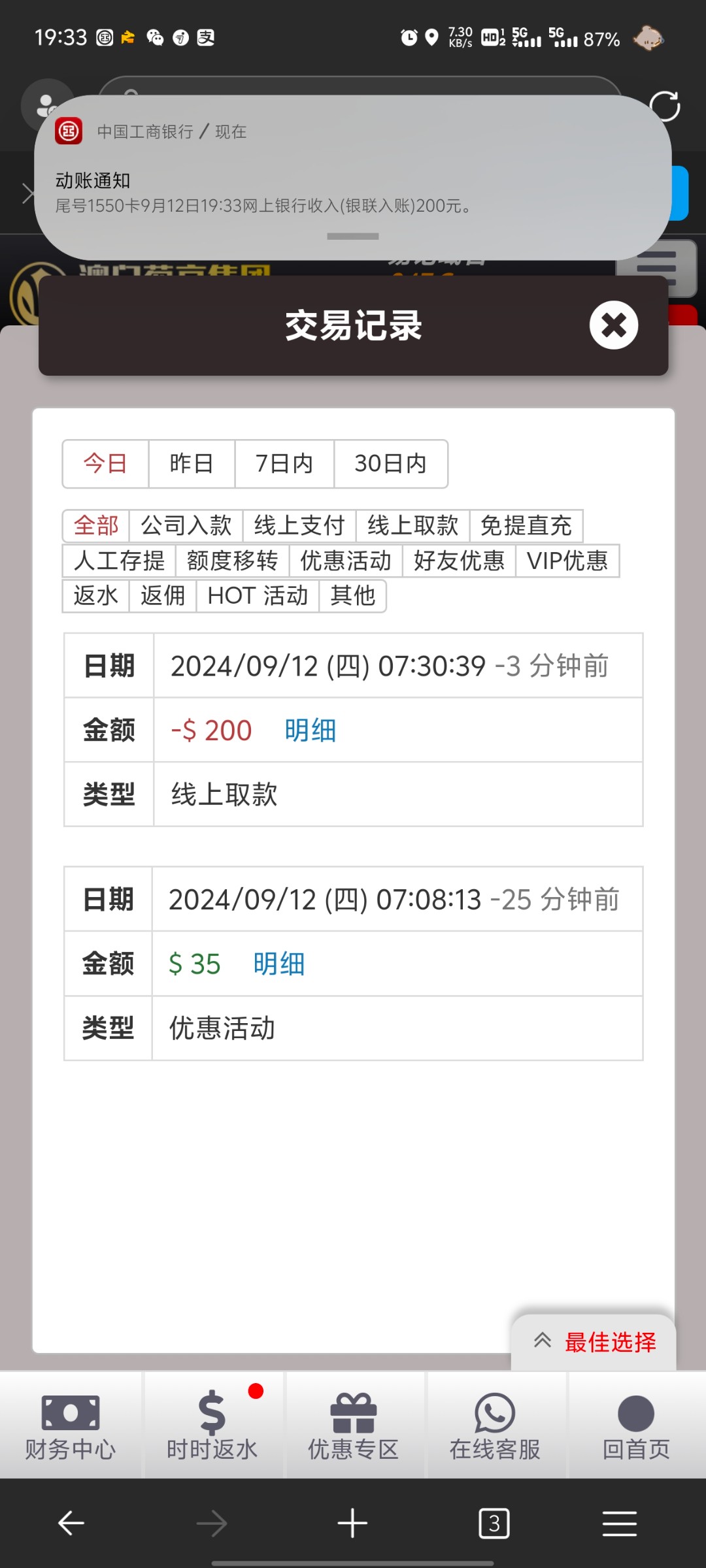 水个鸡,首存100送38,麻将最高20倍挂壁,然后再充了100去AG搞回来200提现了,又去客服申请中秋活动给了58最高到95又上不去,然后输完,充200提200,