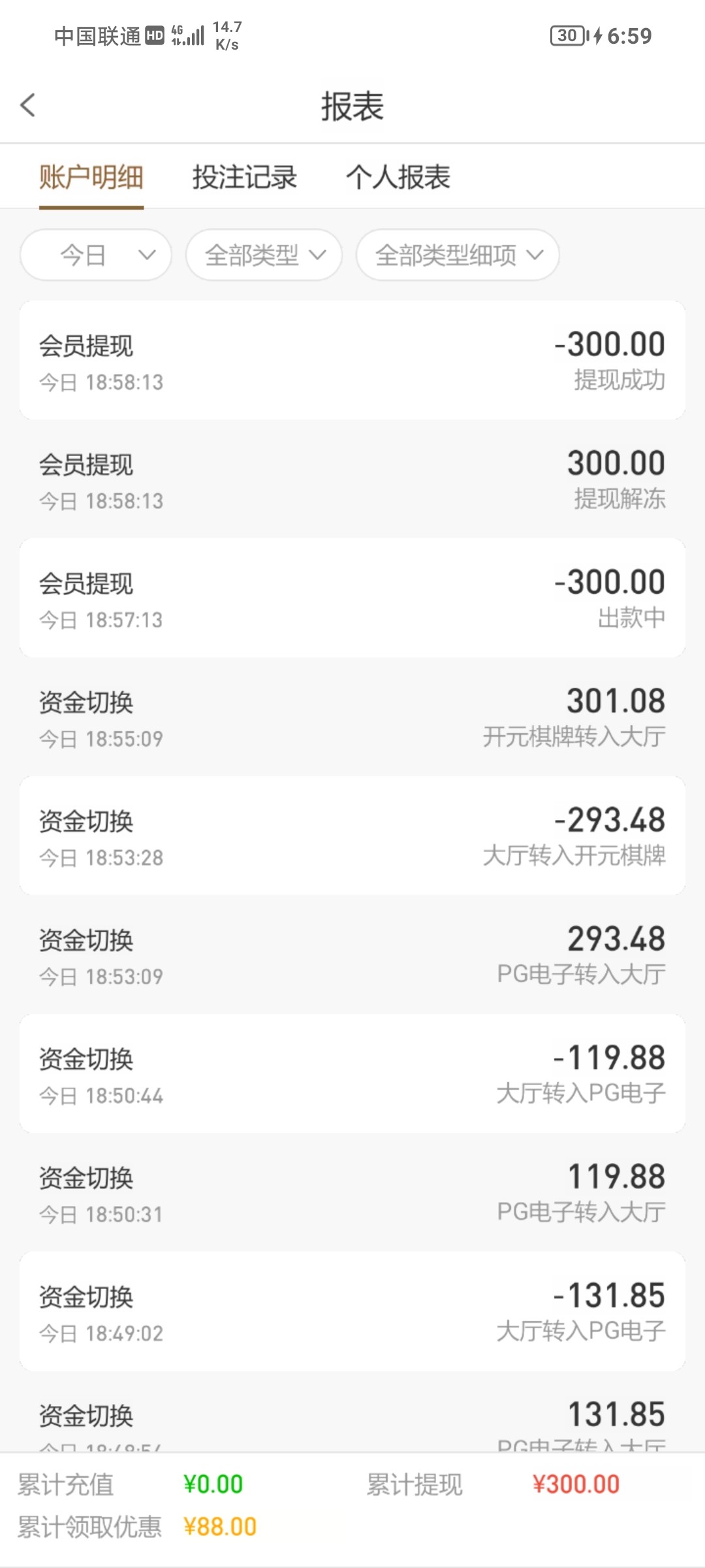 余额 我玩的野鸡台也是500上过7500上个月,没用上多少最后都吐回去,