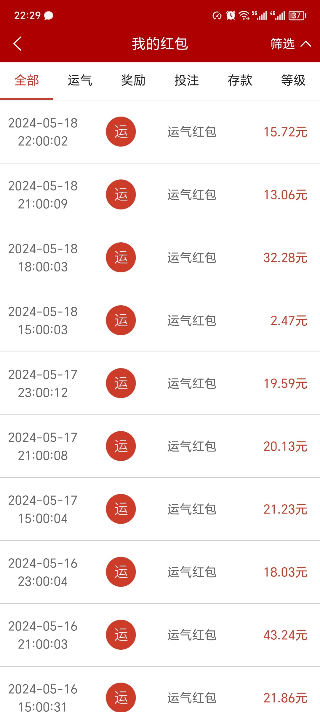 洛奇 这是充了多少?这么大的红包,我的基本10以下,很少有10➕的