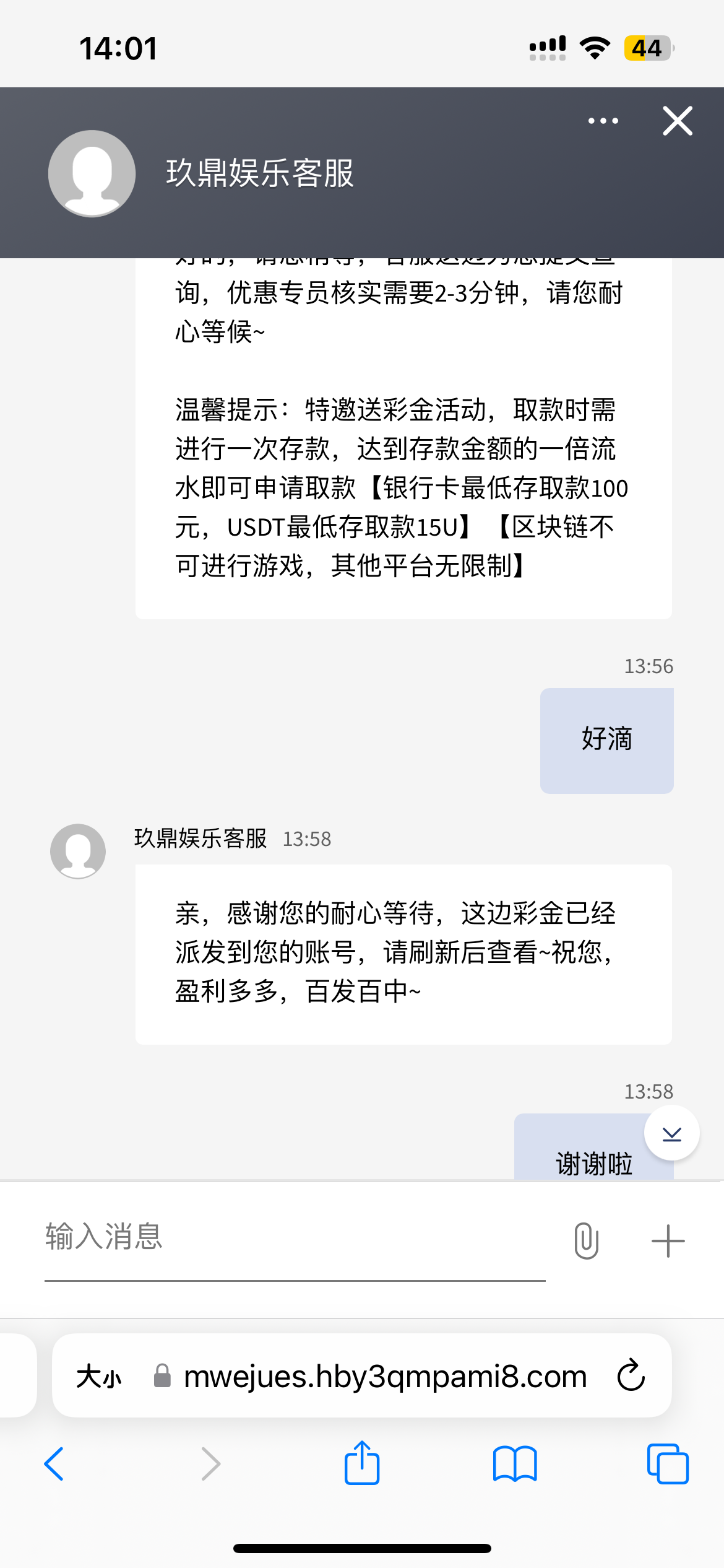 云南: 已经半年多,没有在任何平台充值过昨天在澳门金沙。990    充值100元,最高达到400。最后输了100    300提款直接被黑。老哥们。别玩儿了。现在不要说白嫖了,充钱玩都没有用了。这次彻底戒赌了。现在国家严打庄稼,他们日子也不好过,以后也就是只有倒闭跑路的份。他们现在就是黑钱圈钱跑路也只是时间的问题