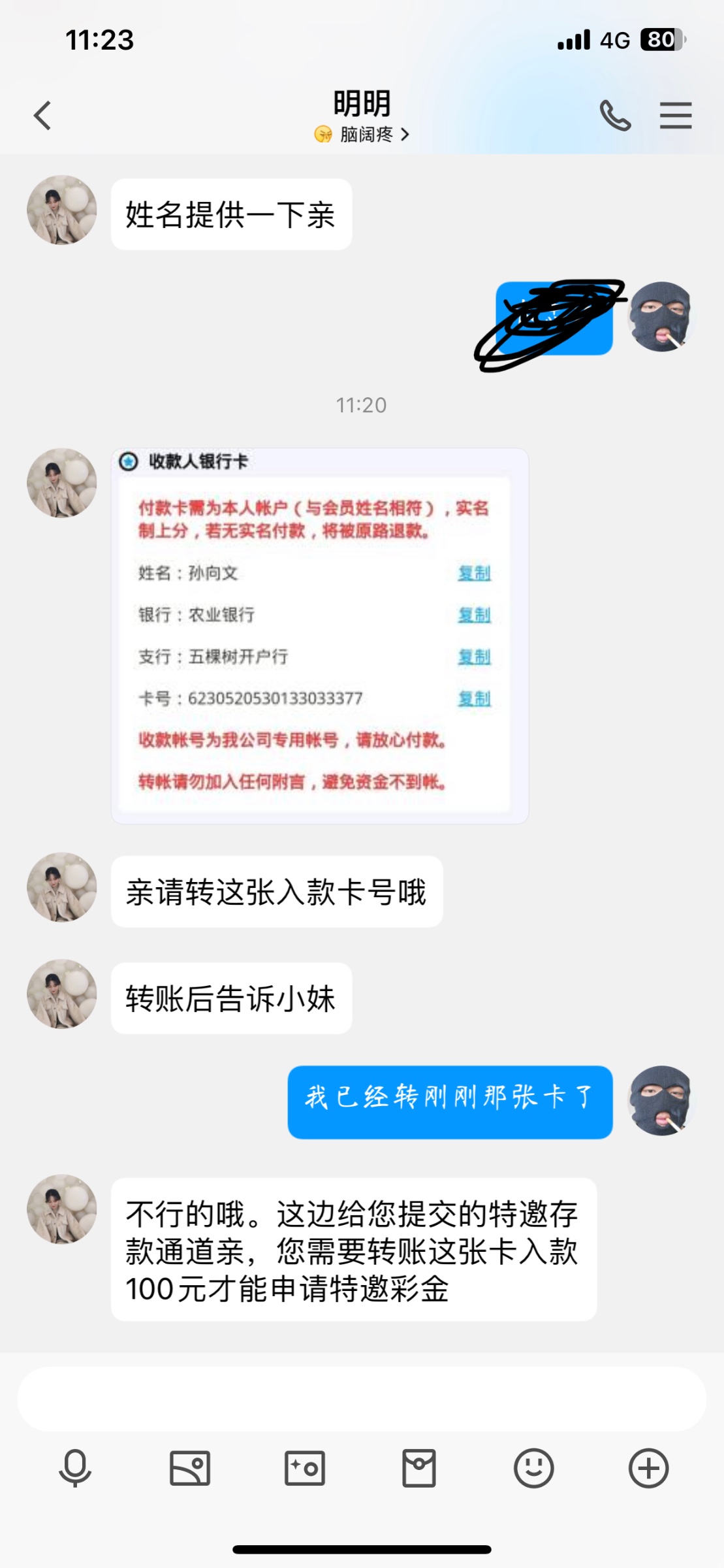 这个鸡巴是骗子来的大家别去 他提供的帐号,我们转钱进去,就是冲到他的帐号去了把这个鸡巴疯了,操他娘的