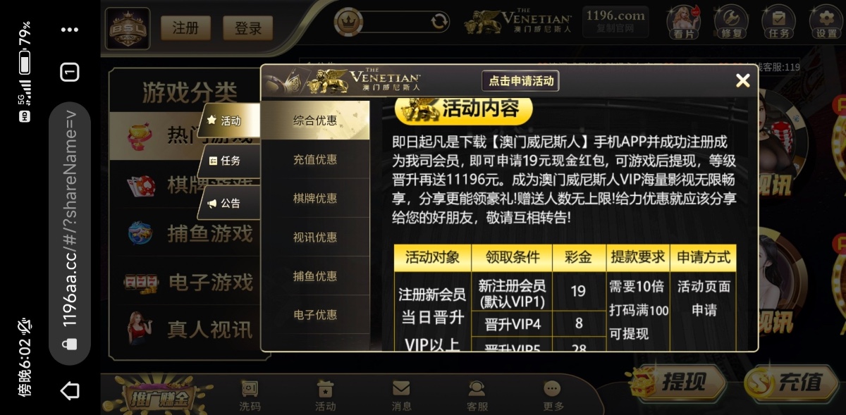 新用户下载APP注册自助申请送19/10倍流水提现。