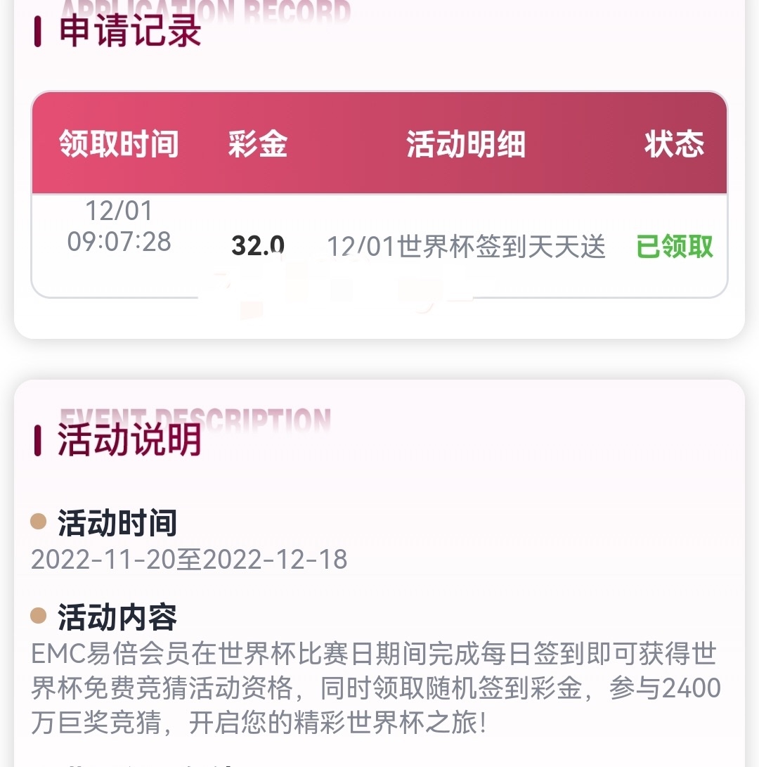 签到彩金只能下注体育。一倍流水,亲测32