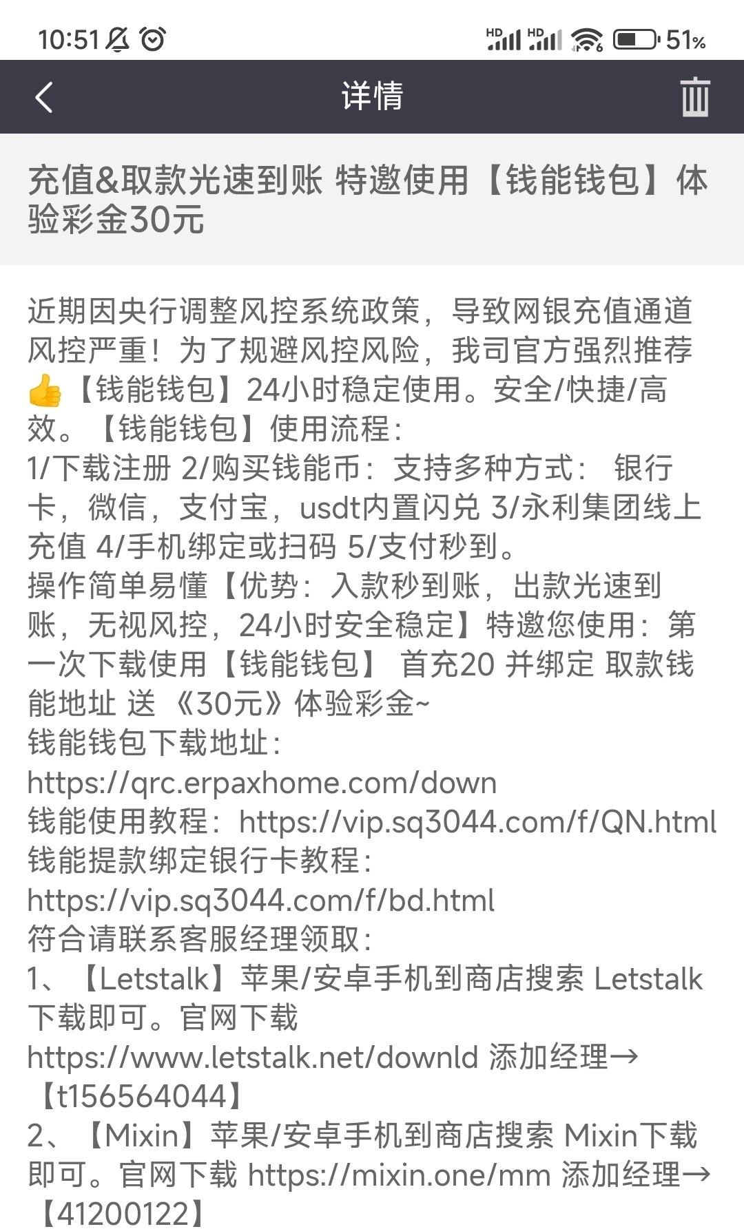 本站声明 1、本帖标题:钱能钱包送30