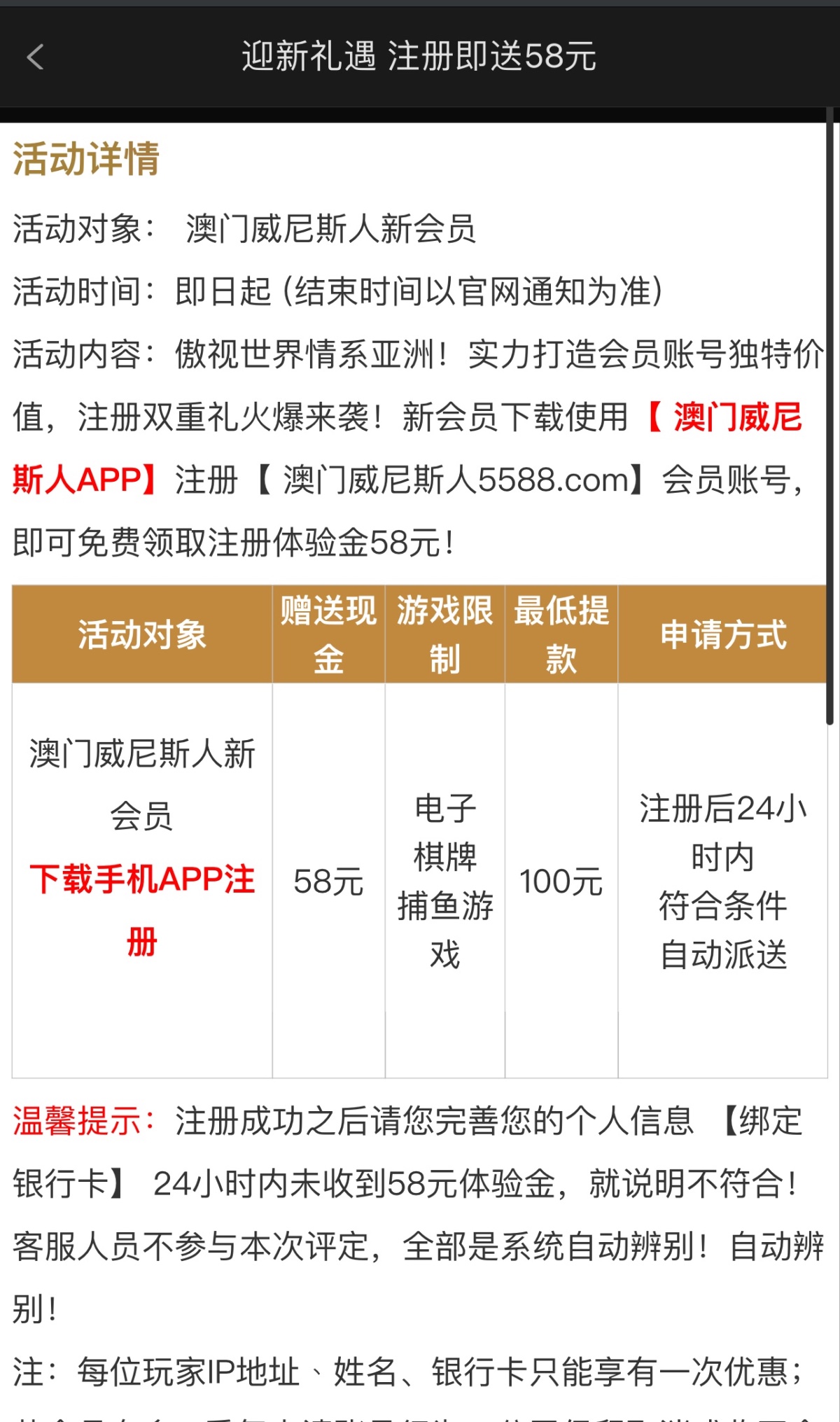 本站声明 1、本帖标题: 【澳门威尼斯人5588】——(送58)