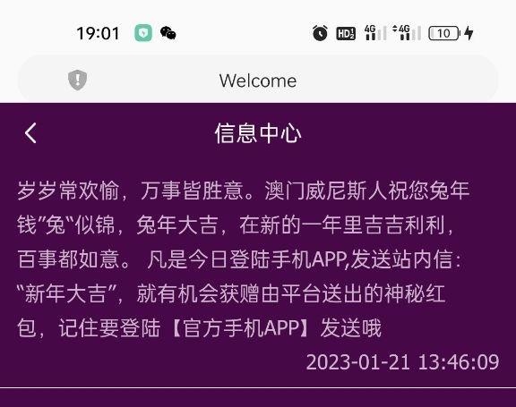 下面两个不一样台子 老用户有下面信息的回馈活动到站内信发送新年大吉送68彩金,具体自测,没有号无视即可。