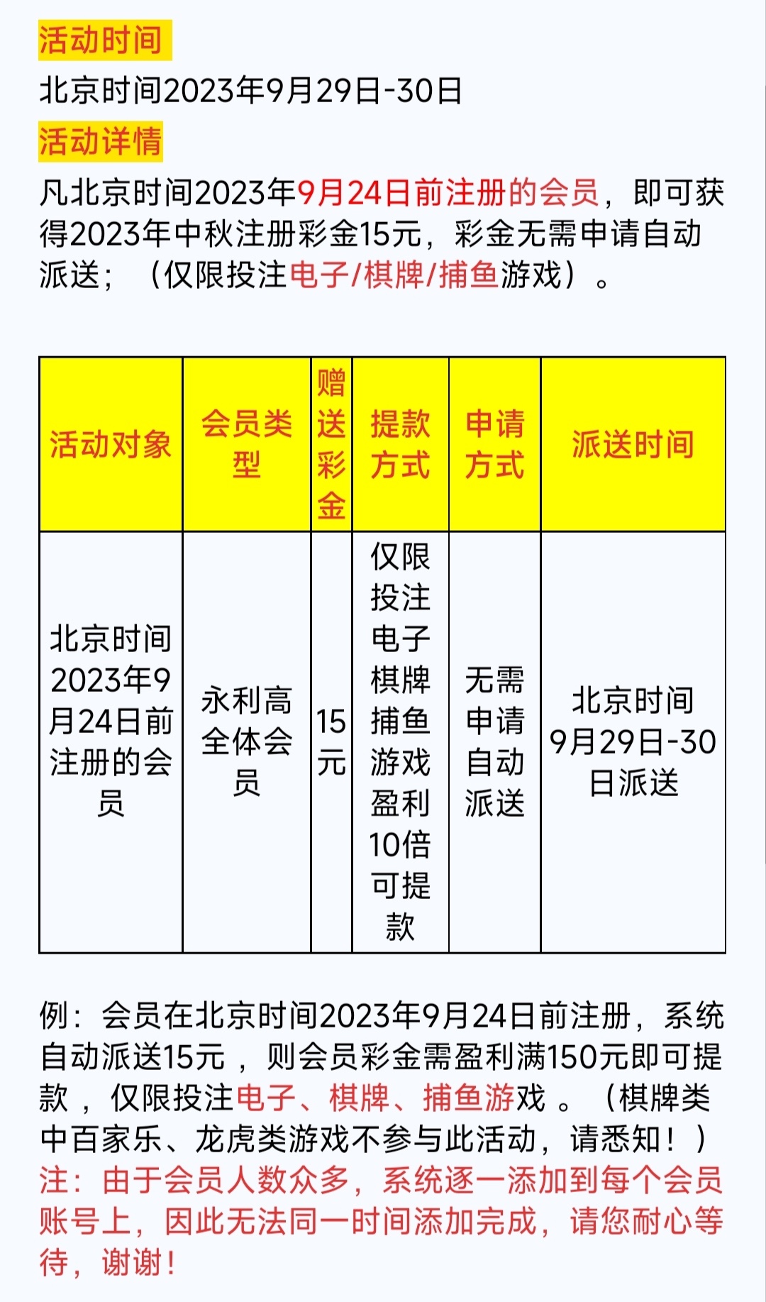 老用户中秋节期间回馈15,详细介绍看活动。