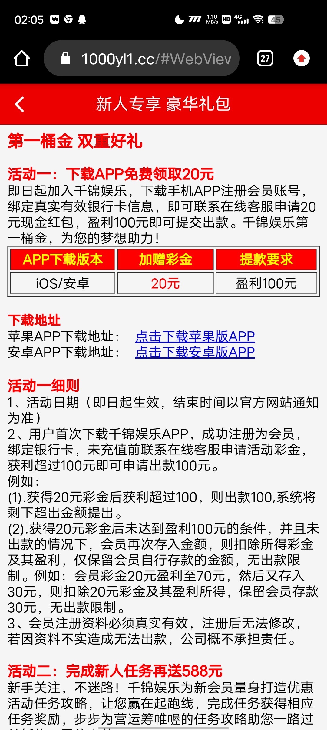 新用户下载APP注册绑卡联系在线客服送20!最低100提!最高不限制,别玩对压游戏!建议全程使用数据流量进行