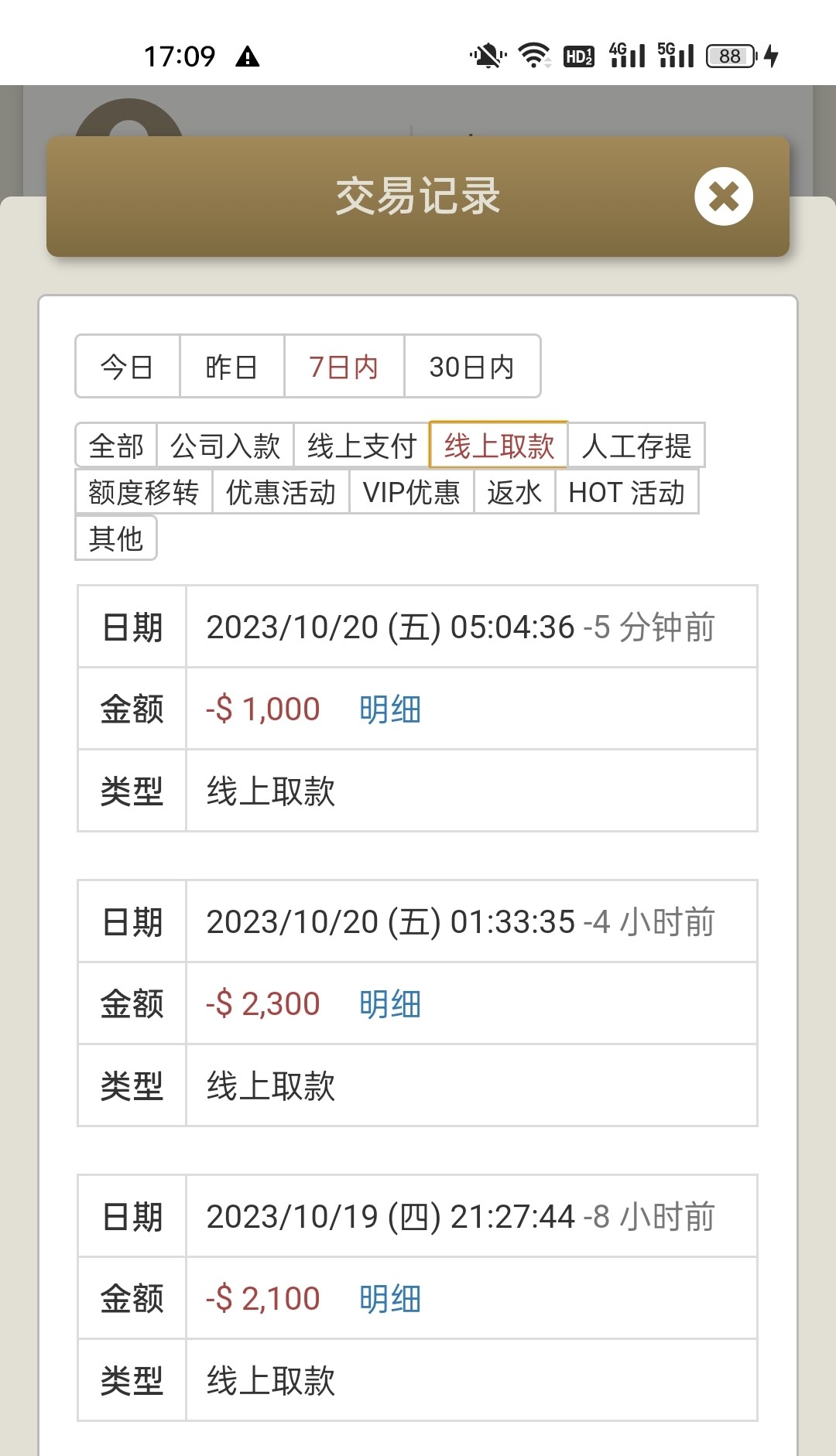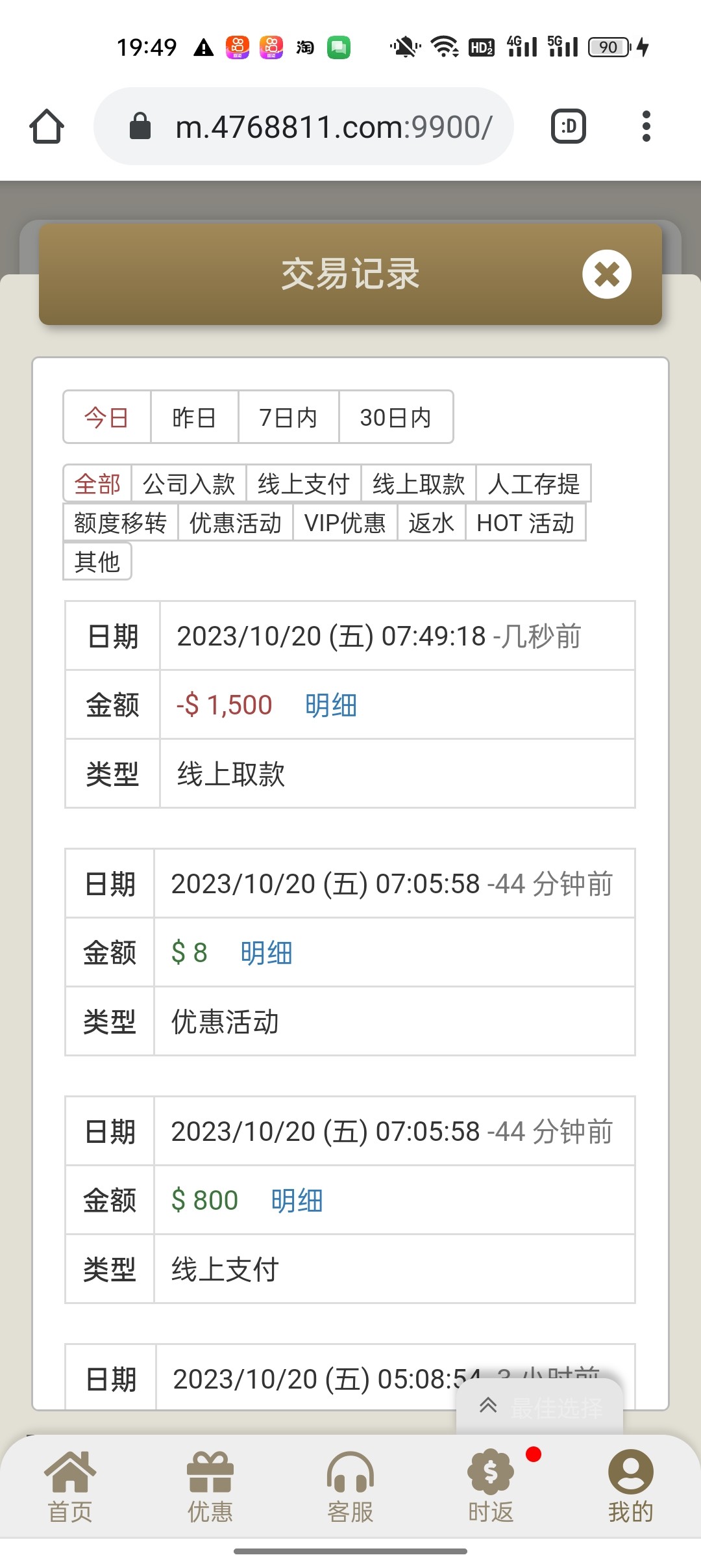 前几天晚上慢点磨,电子500磨到4300,后面杀到1000多,打五龙捕鱼又上到4800,想凑五千,没上去直接白了