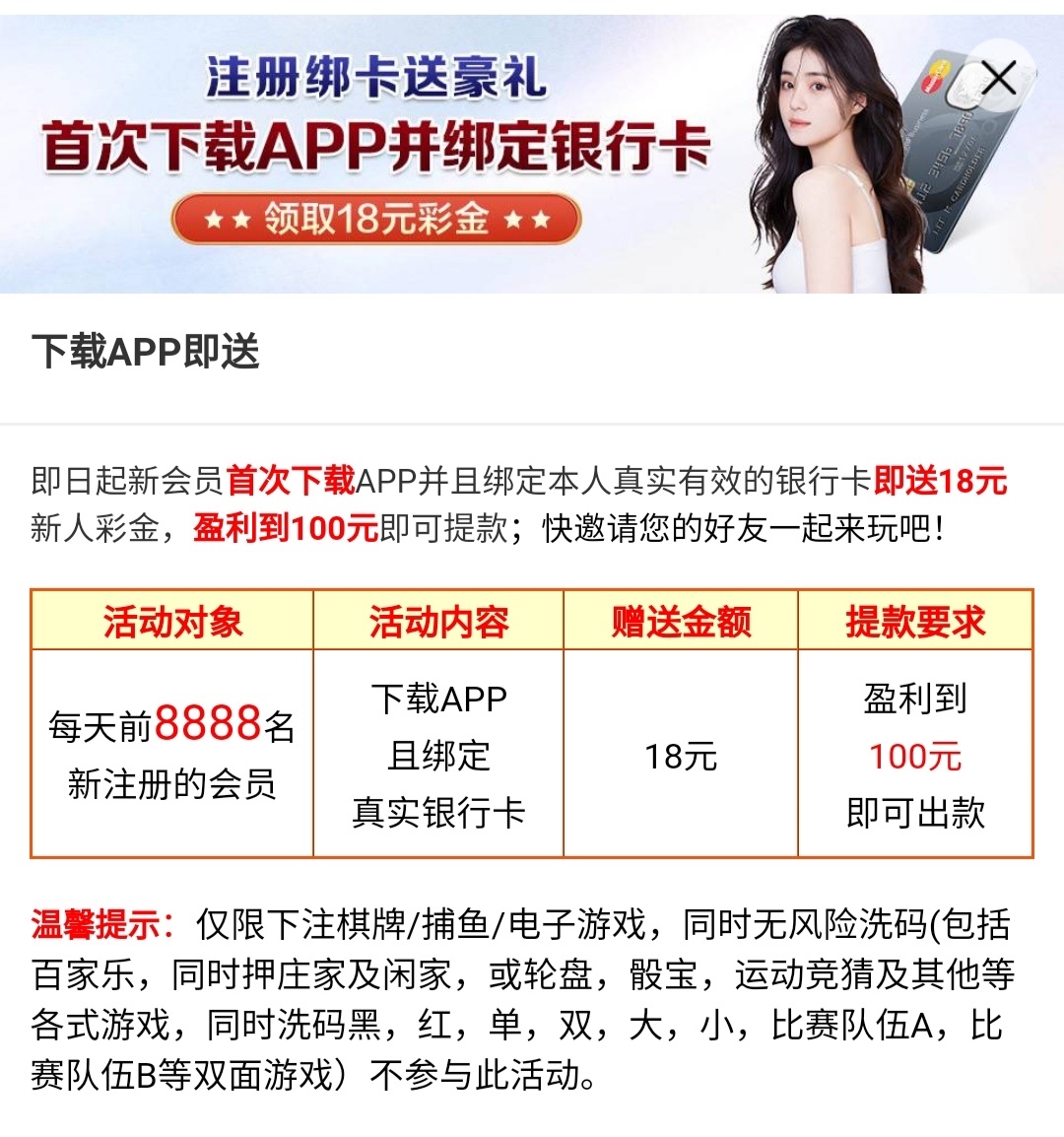 申请彩金要身份证正反面和银行卡照片。