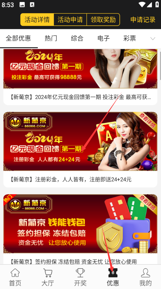 凡是在2024年01月12日23:59:59之前注册的,均可获得注册彩金(24+24)!另外还可以申请新人注册绑卡然后下载APP
