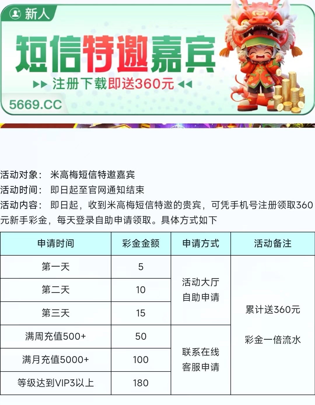 新用户注册优惠里自助申请,第一天送5第二天10第三天15共30。