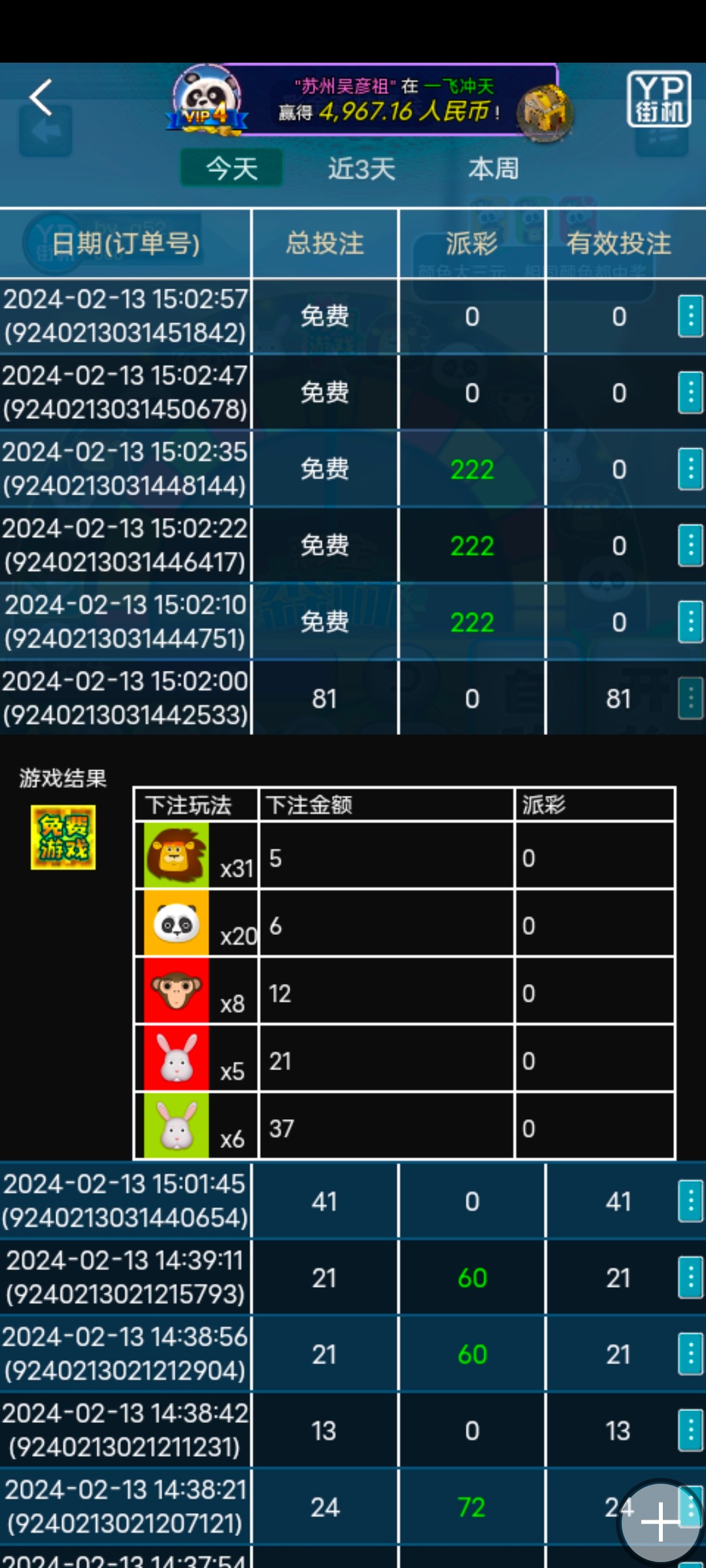 这就跟尴尬了,本来已经提了,然后想转钱能转盘我又充进去了,结果转了3次就转了1块钱 然后那个麻将6毛买了180次 进了3次胡 一次12块 一次6块 还有一次全空转一分没有 直接彩金森林舞会走起 梭哈,中了免费游戏给了666 原来第一次的180也是红包9块梭哈给了我免费游戏