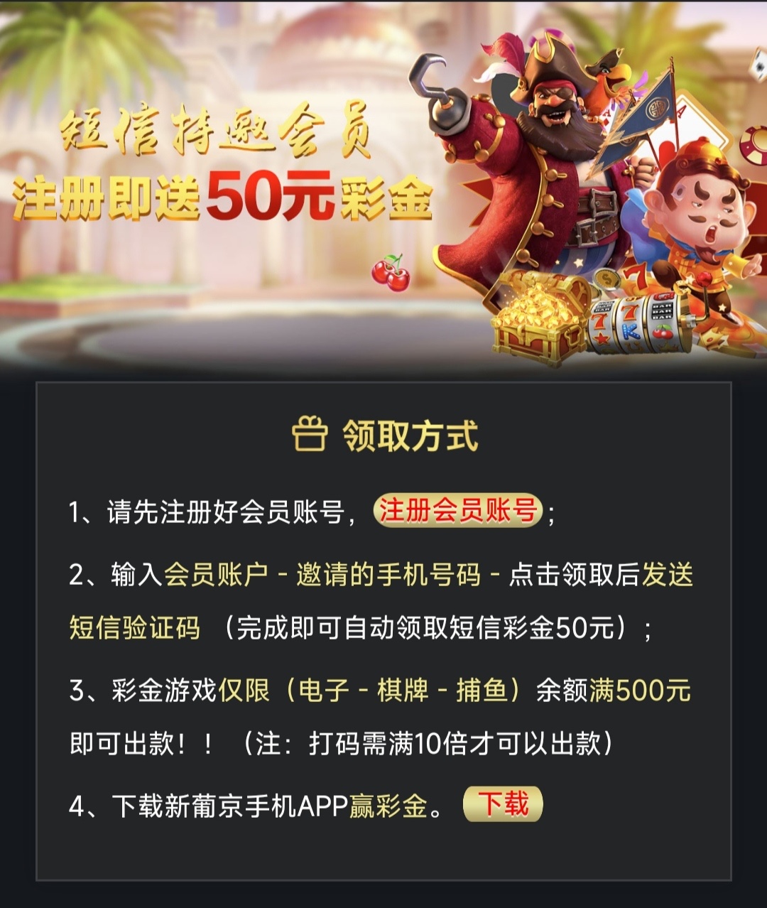 新用户注册下方链接自助申请秒送50/500提现,特邀碰瓷勿充值