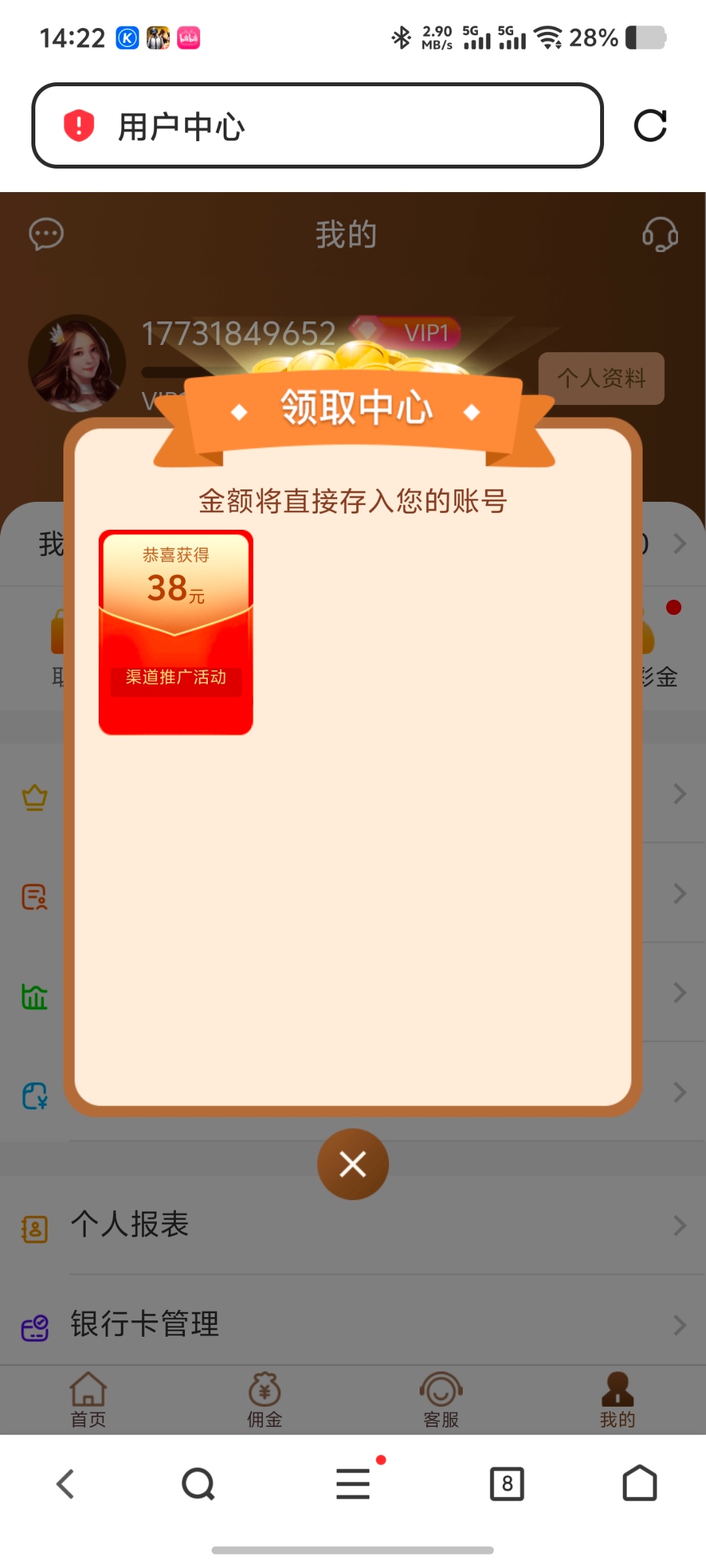 可能你多账号,我冲15出一张5张  出一次4张都到了