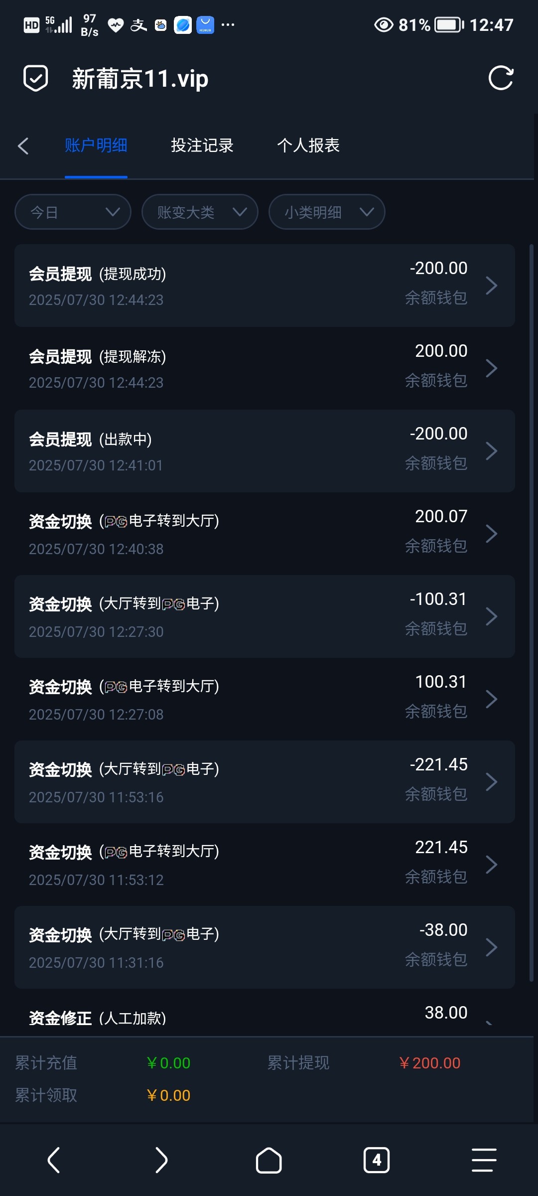 碰瓷特邀38 提现到账200