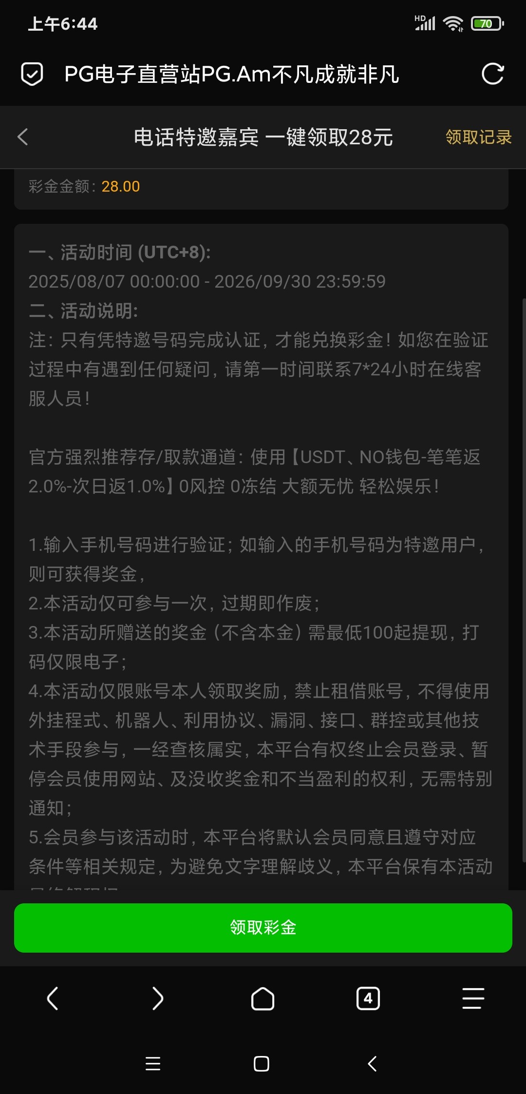 老台子新特邀活动。老用户不用去了,需要绑定手机号码时间在活动开始之后。