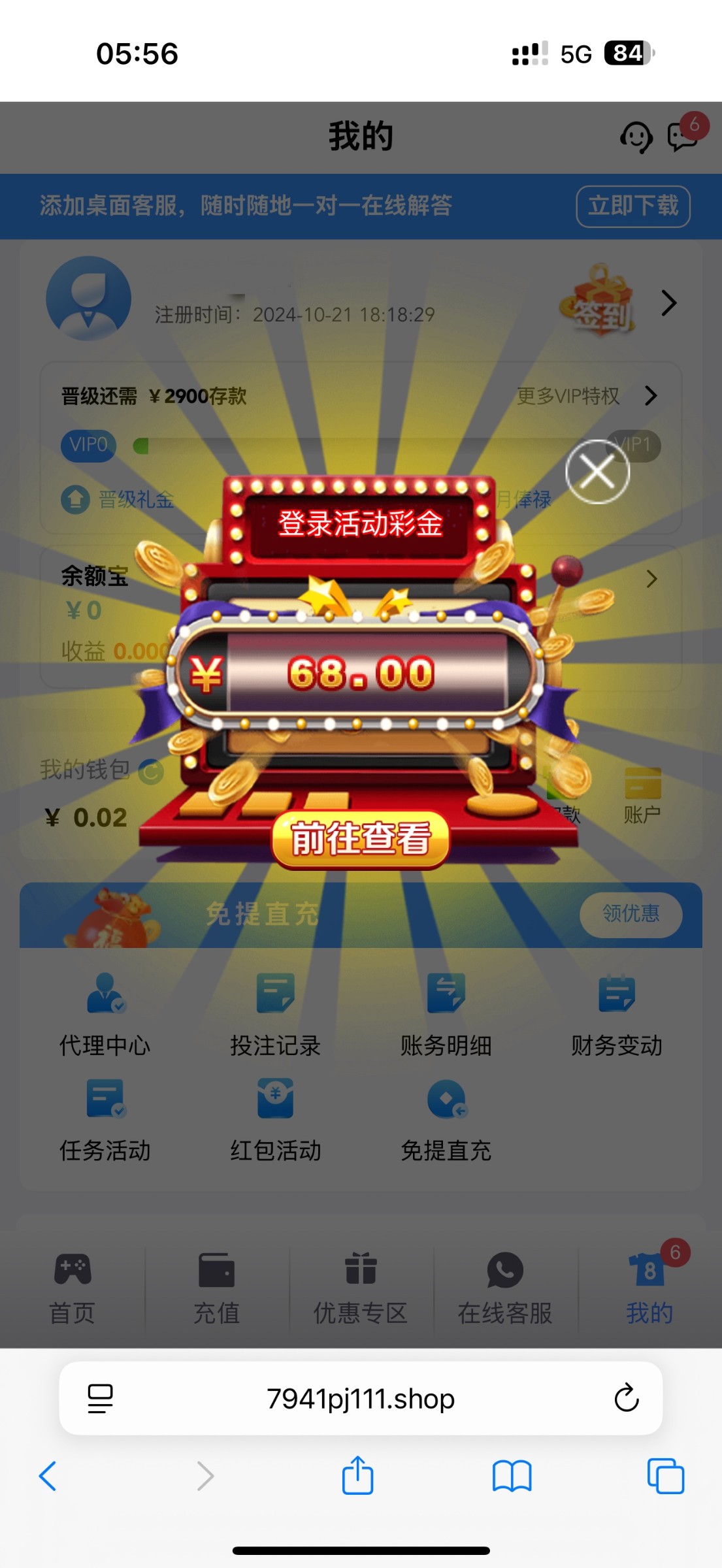 【小蓝板7491】登录回馈68彩金