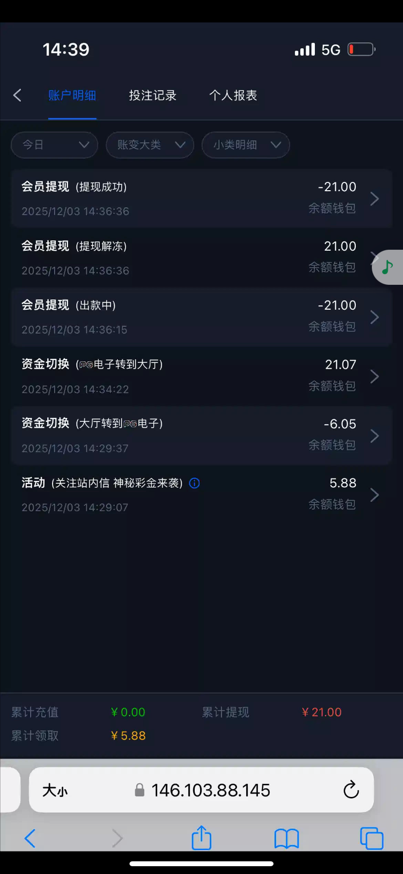 出款情况:自测(