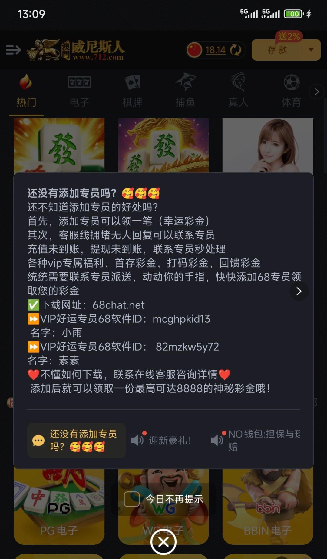 【威尼斯712-添加专员彩金】