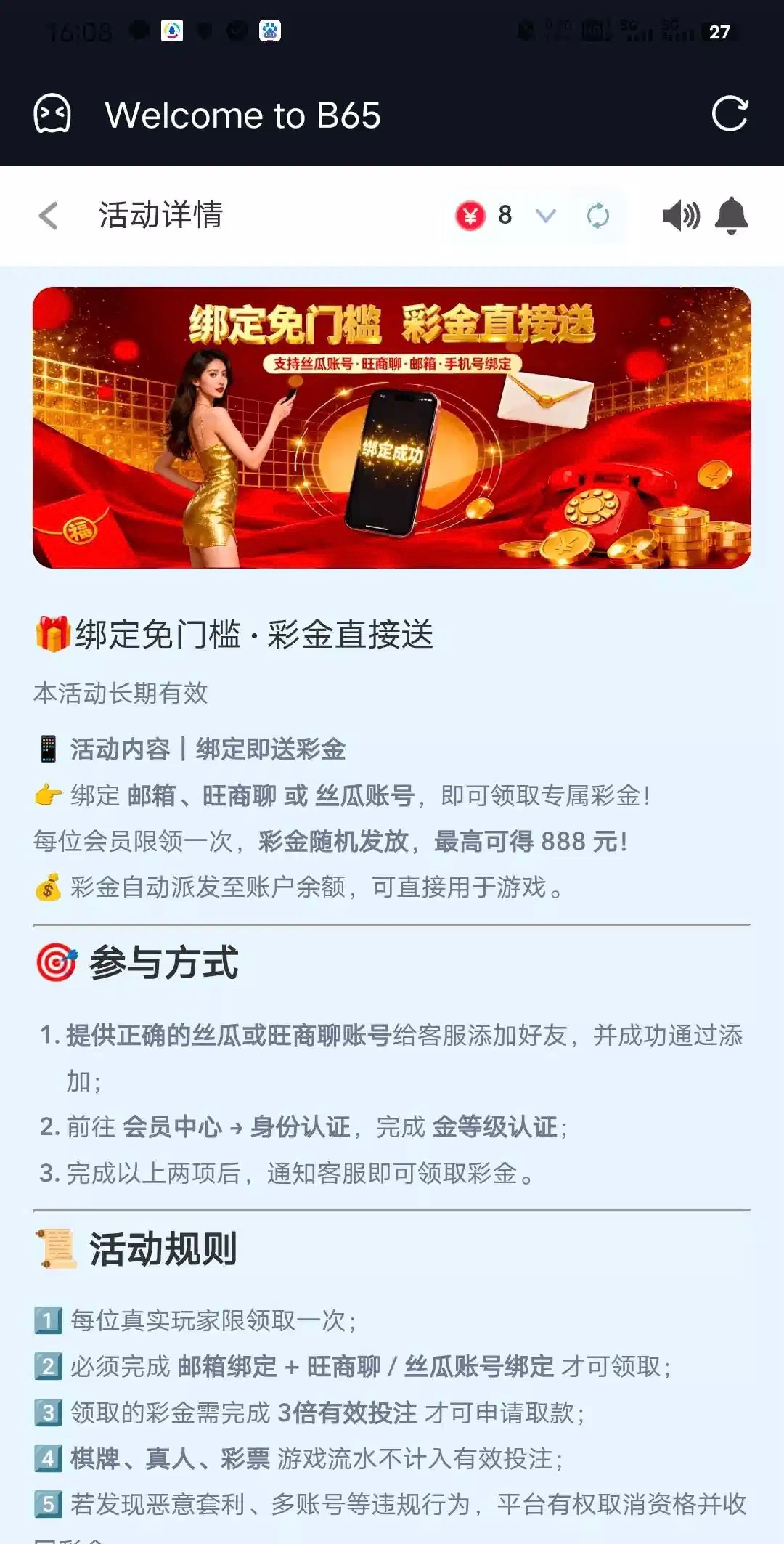 【B65】—✅—注册送8
