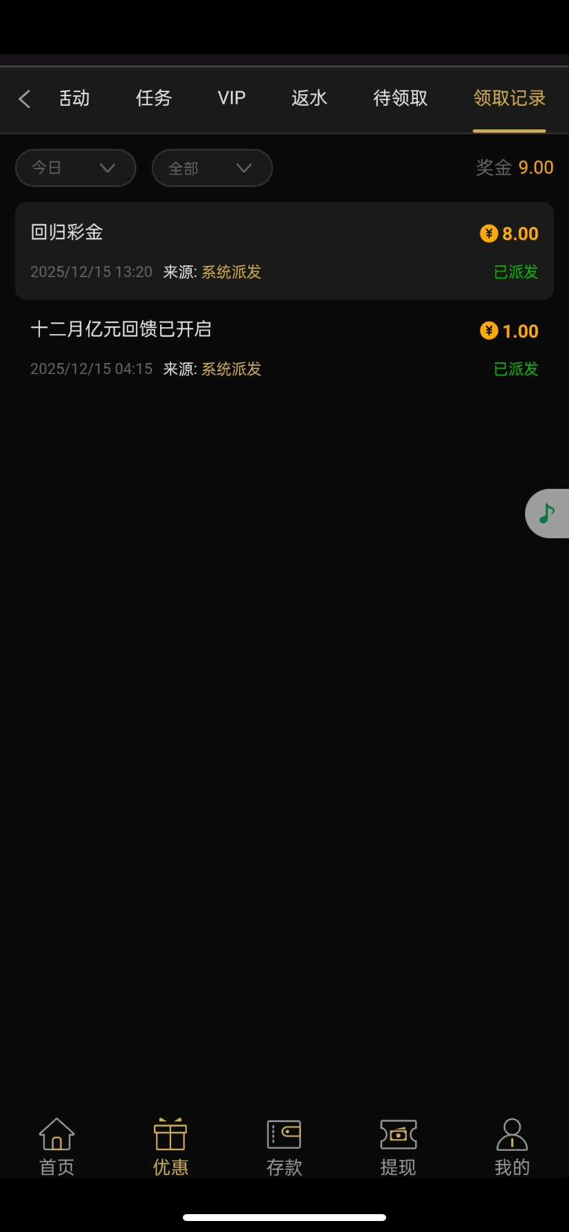 722回归彩金