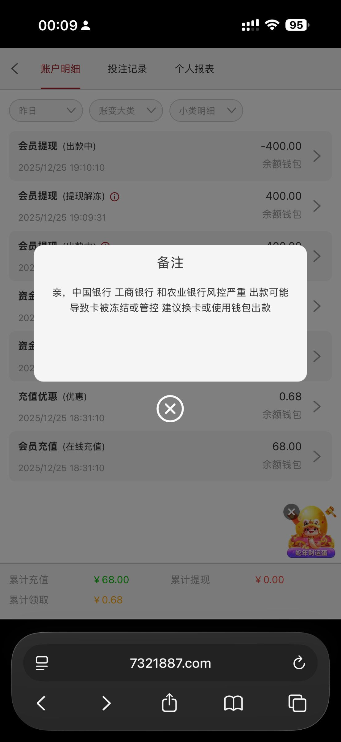 充 68 提 400,不让提卡,然后提电子钱包,然后要手持,完了说我套利