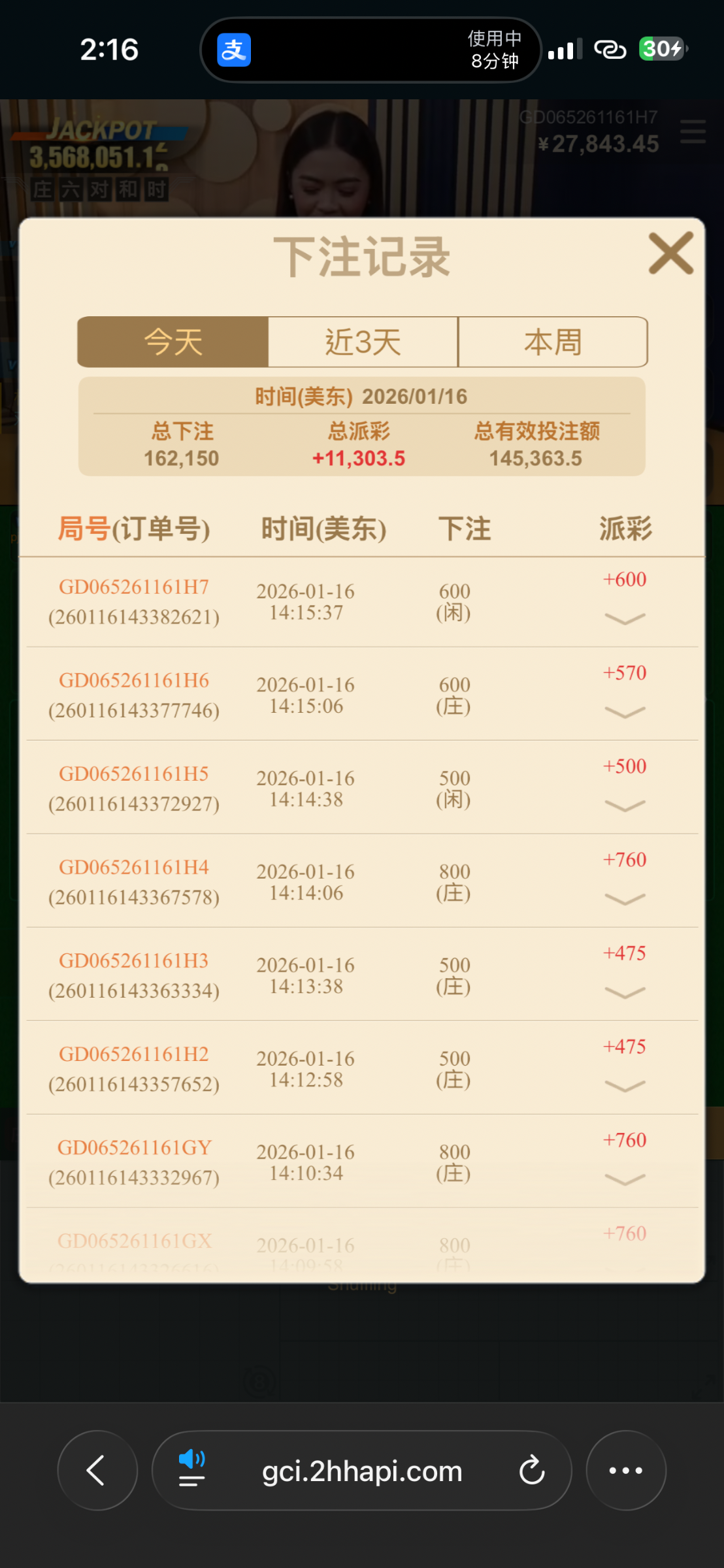 已经打了14万5流水,暂时赢了1w,好累啊