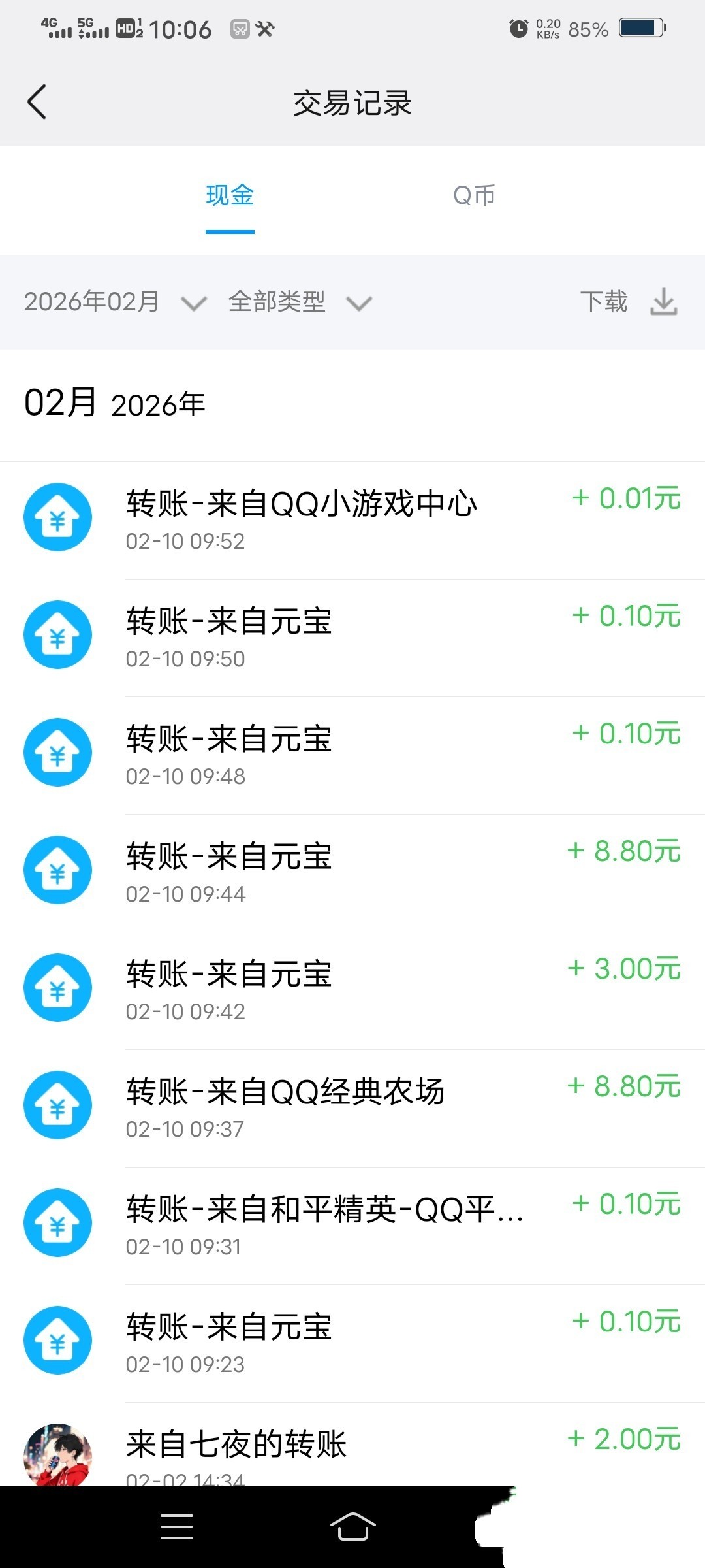 从qq端下载元宝给了三块