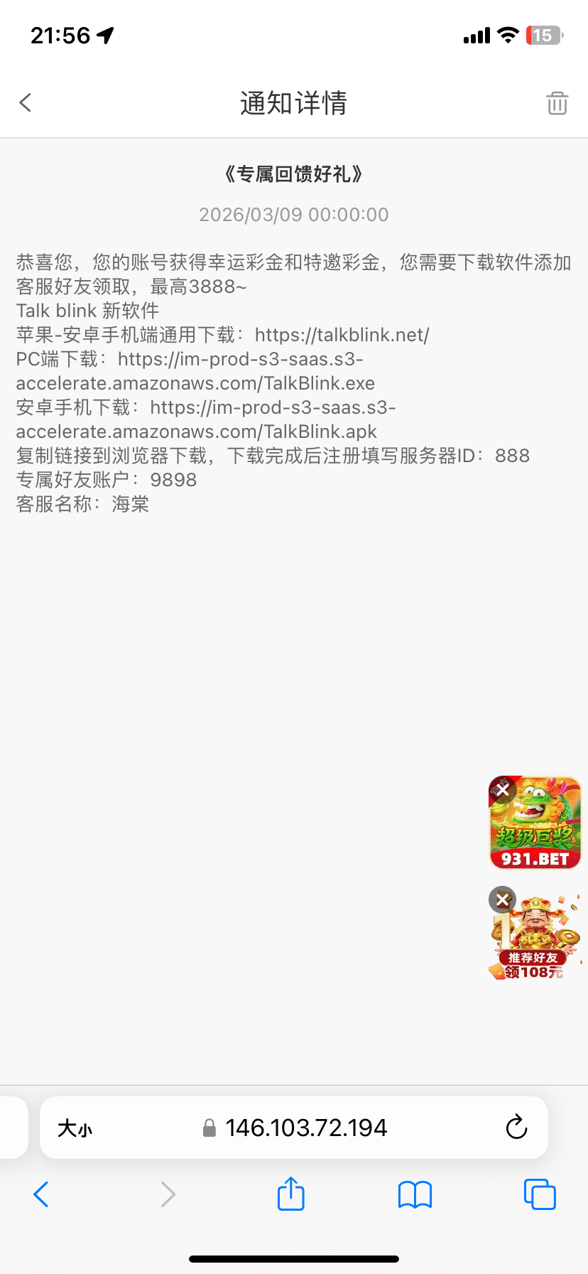 站内信彩金 充值过有号的大部分都有 下载tk添加专员
