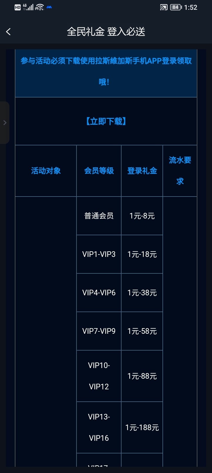 拉斯维加斯742每天登录送1-18