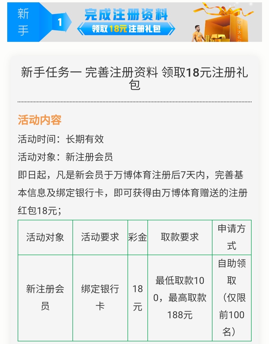 新用户注册完善资料活动里自助申请18