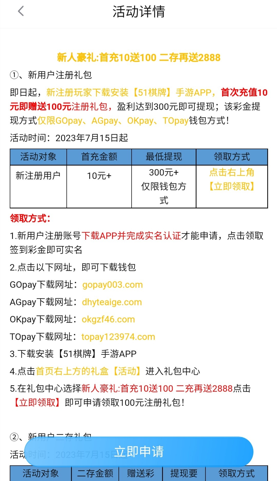 51棋牌新出活动,10+100,300出款!